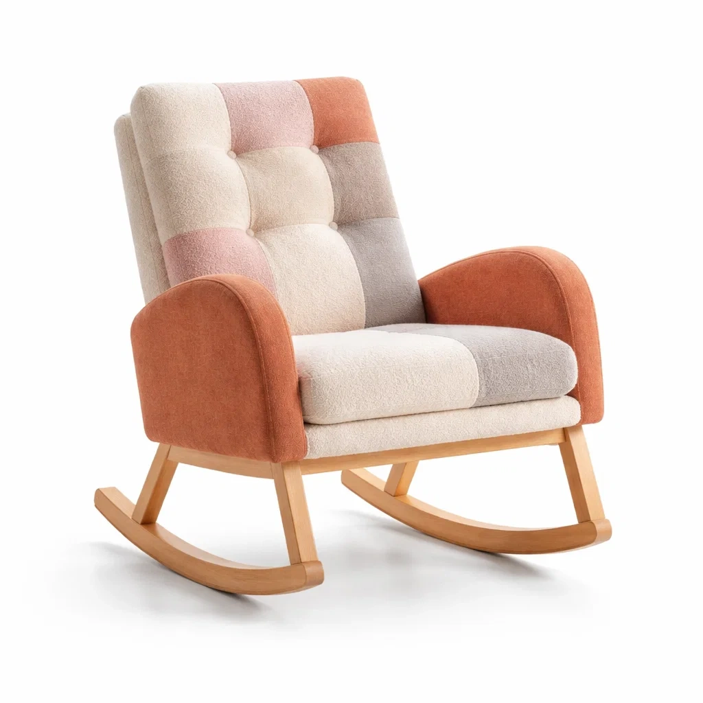 Schaukelstuhl stoff patchwork massivholz beige terracotta