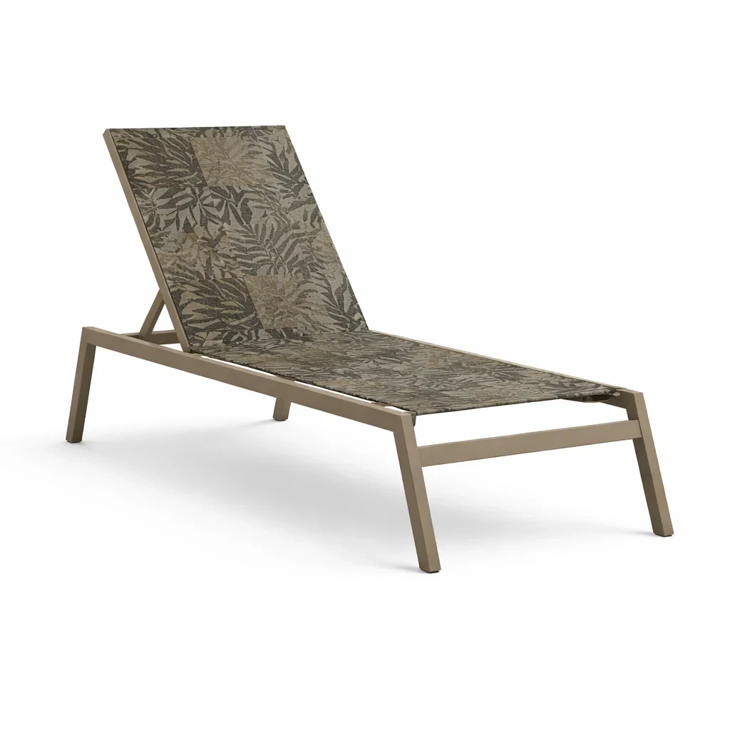 Material: Rahmen aus pulverbeschichtetem Aluminium, Liegefläche aus Polyester-Textilen